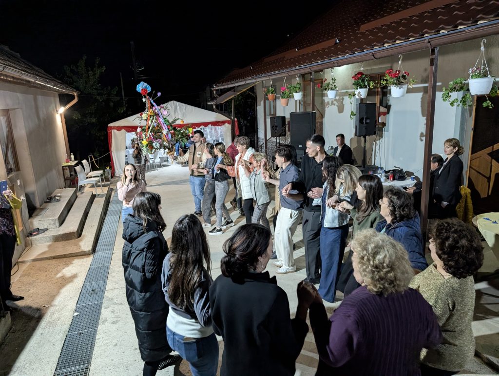 Seara mergea excelent, lăutarii știau să cânte fix ce trebuie, iar vremea a ținut cu noi și nu a plouat. Vinul parcă era tot mai bun, în spate se făceau grătarele și încet își făcea apariția și un purceluș de lapte. Era multă voie bun și toată lumea se simțea bine. Când credeam că deja e prea multă mâncare, au mai venit și prăjiturile. Tradiția era că fiecare invitat aduce un platou de prăjituri, dar nu din alea cumpărate, toate făcute de casă. Cel puțin zece tipuri diferite de prăjitură am gustat, efectiv nu mă mai puteam opri. Pe la ora două noi am plecat că Maria nu prea mai avea energie, dar lume a continut până dimineața la cinci.
